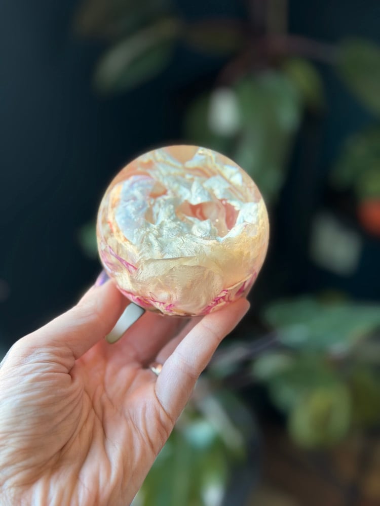These 3” globe paperweights boast beautiful preserved flowers! Perfect for office or library decor!