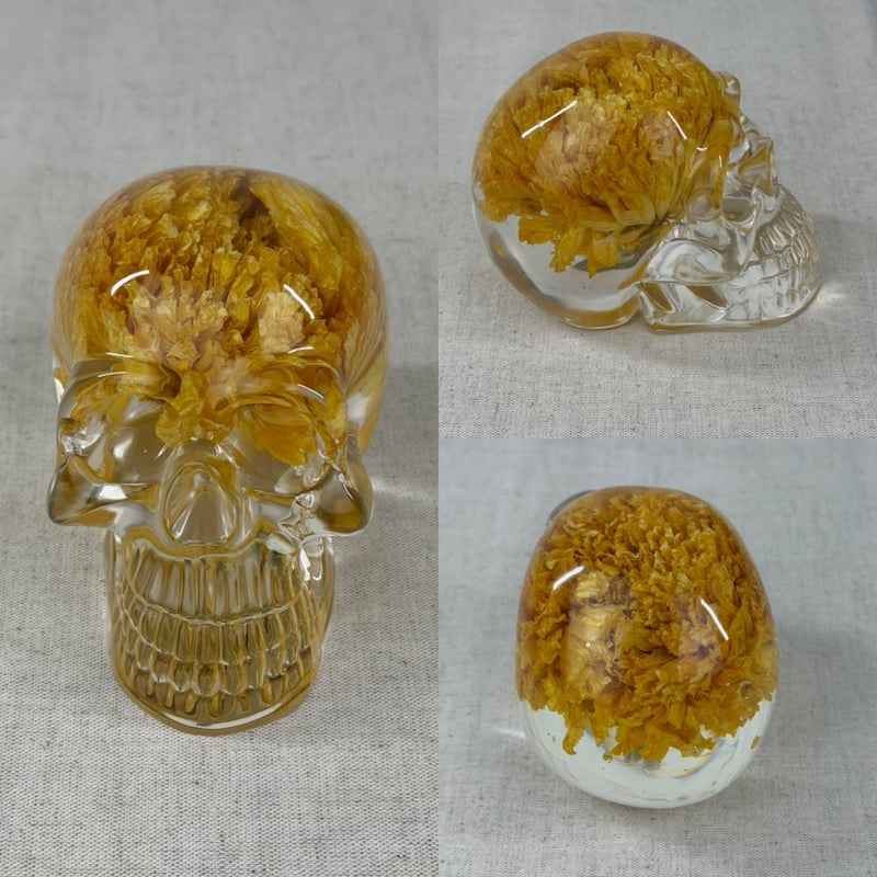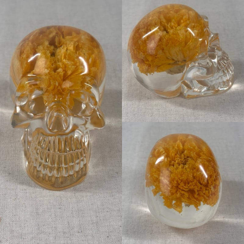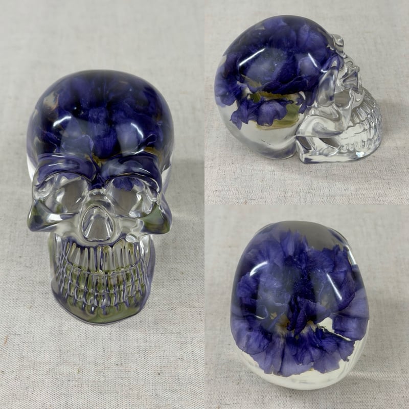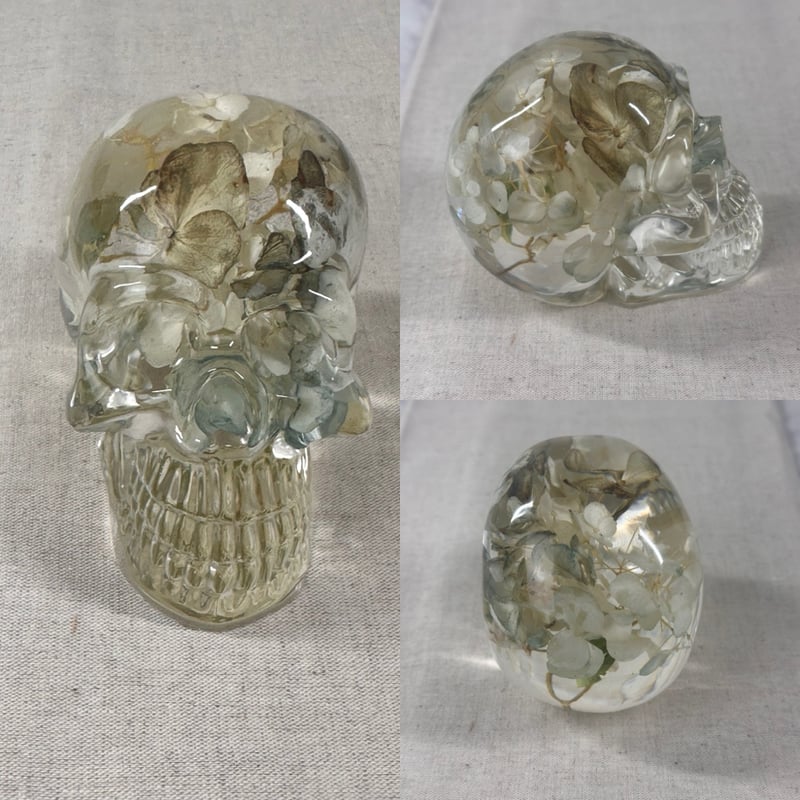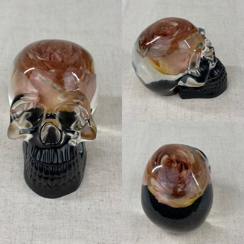 These resin skulls contain an array of flowers! They are approximately 4" big. Perfect decor for those macabre, dark academia, goth lovers and skull collectors!